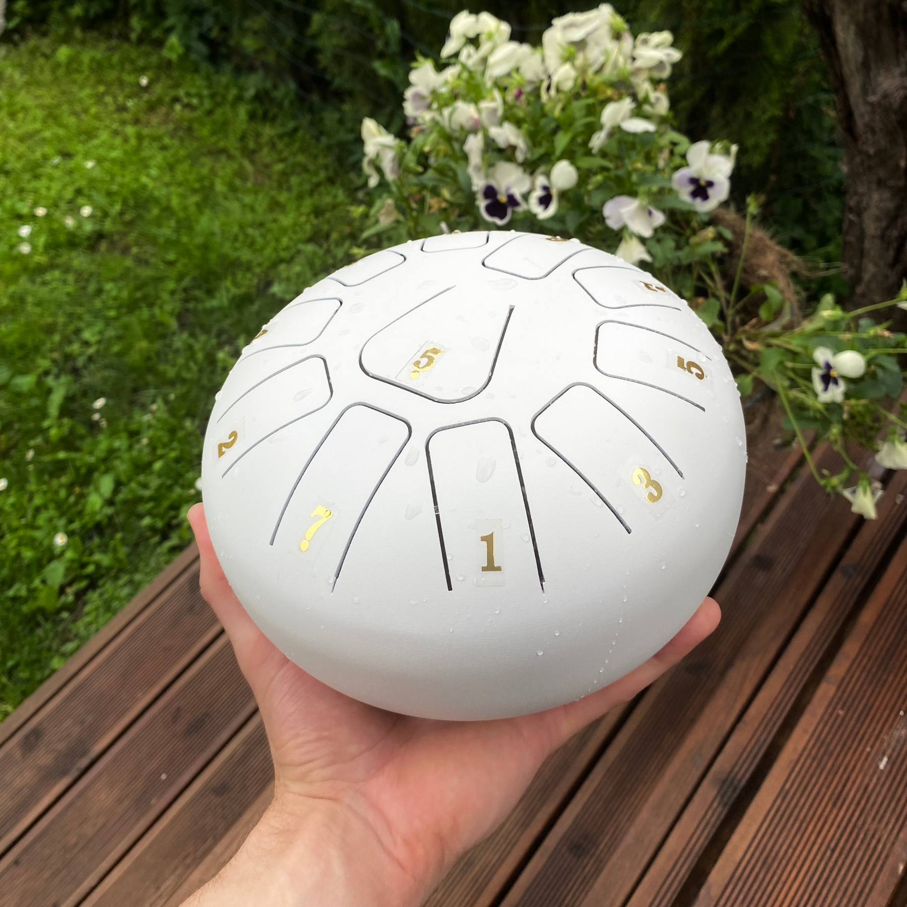 Answer 1: The product is made from a titanium steel alloy, which enhances its durability and produces a unique sound quality.